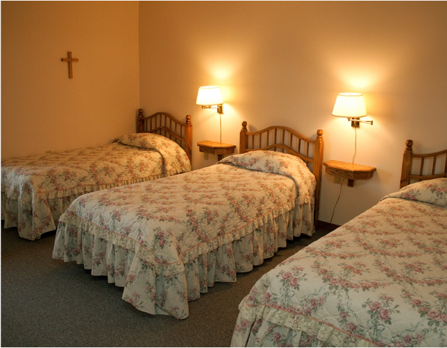 Underwood offers simple, comfortable hotel-style rooms in a peaceful wooded setting. Rooms are spacious and furnished with 3 single beds, a table and chairs, and a private bathroom with shower.