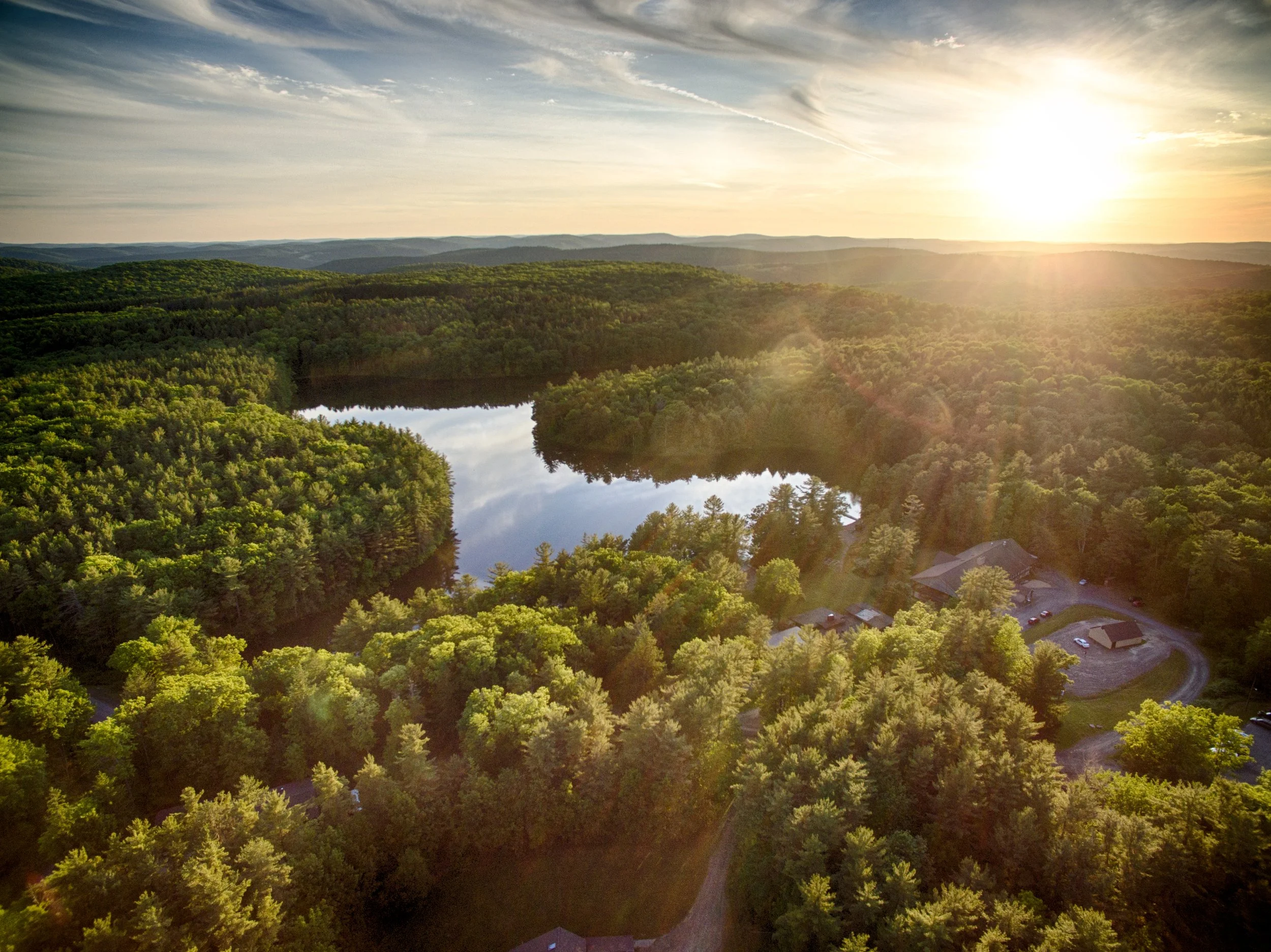 Sky Lake Retreat Center's rustic charm and comfortable surroundings await your arrival. Between workshops, retreat to a chair overlooking the picturesque lake or go for a leisurely stroll on one of the trails that meander through more than 900-acres of forest, fields, and water, all yours to explore. These facilities offer the perfect setting for our festival, a place to relax, to contemplate, to connect.